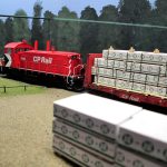 Located at the west end of Nairn, the Pineland Spur serves a lumber mill operated by E.B. Eddy Forest Products. One of the unique operational aspects of the Sudbury area is that CP ran a unit train of logs from a siding at Ramsay, on the Nemegos subdivision west of Cartier, to Nairn to supply this mill. Cars of finished lumber would also be loaded on the spur in front of the log unloading area.